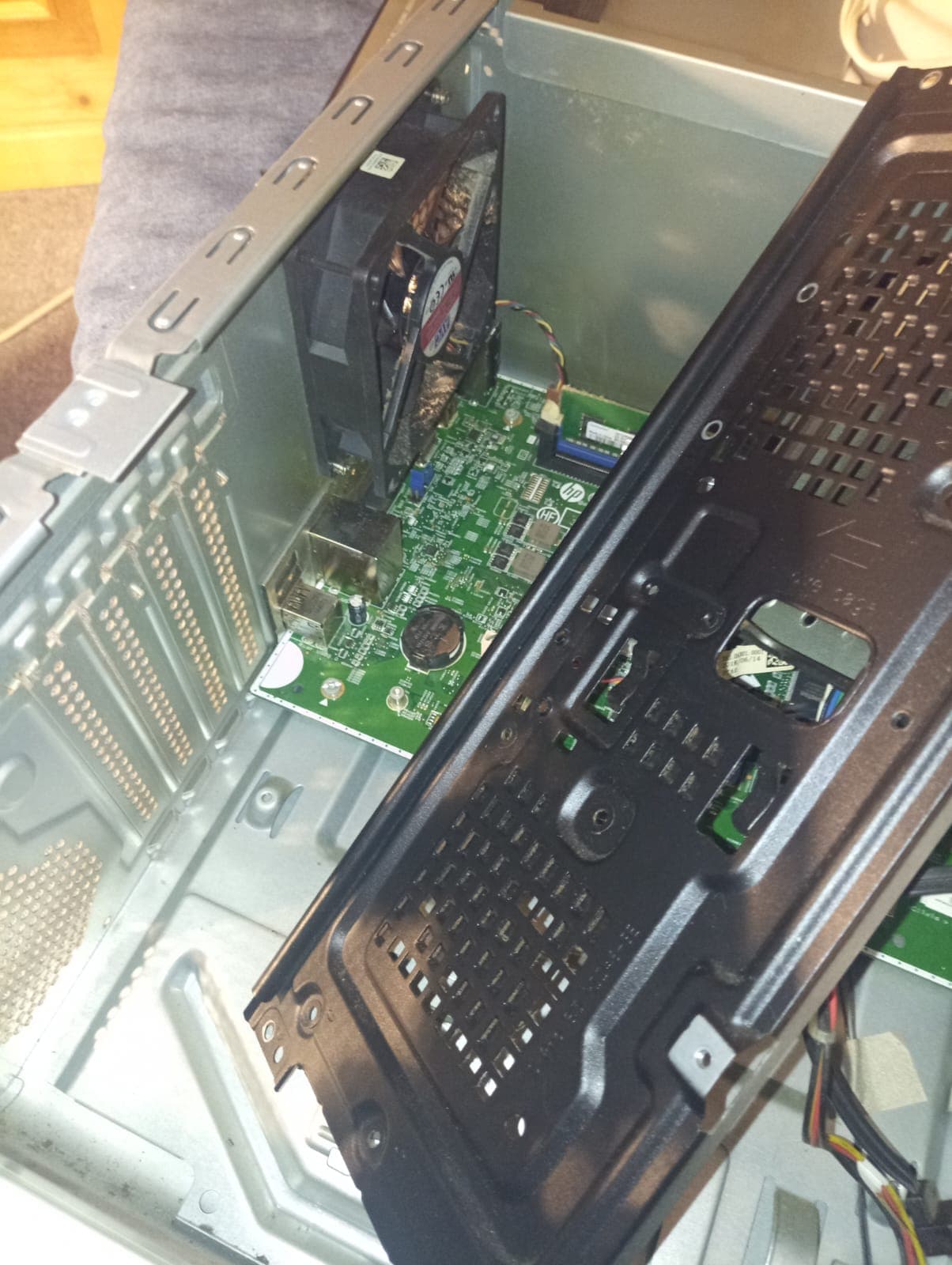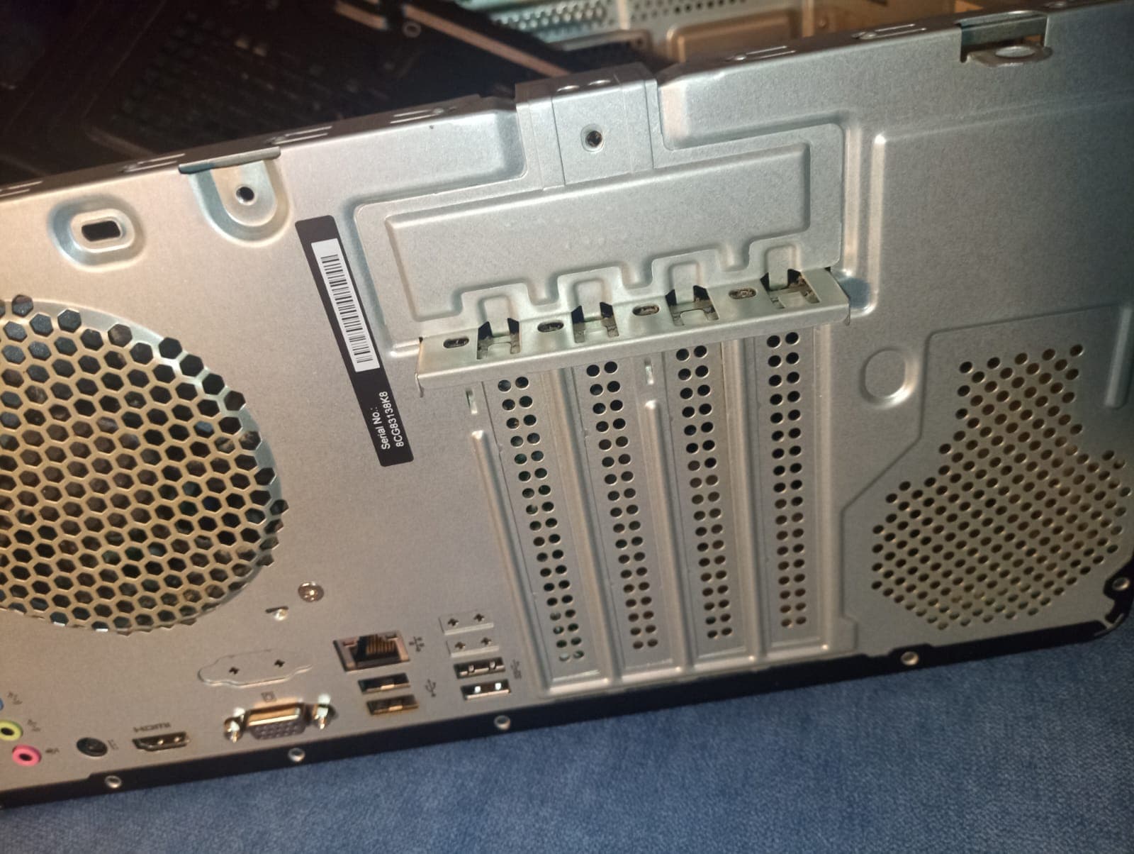 voici mes photos : j’ai donc une tour, avec 4 emplacements mais sans cage-support, seulement 1 seule connection sata, et 1 seule connection pour une carte supplémentaire, j’ai juste ?