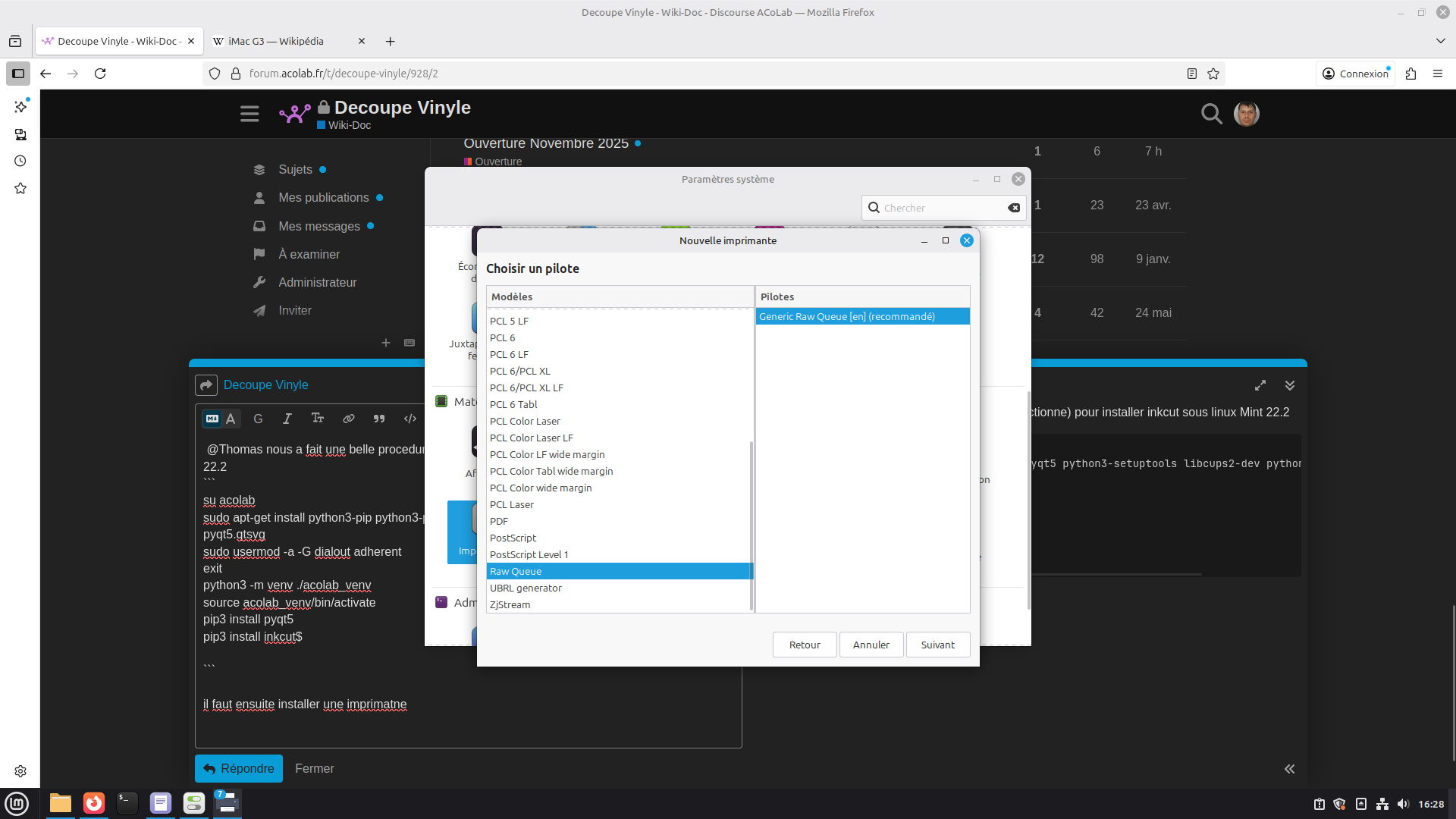 Sélectionner le pilote générique (recommandé) ensuite modèle Raw Queue pilote Generic Raw queue (Attention tout générique recommandé ne marche pas!!!)
