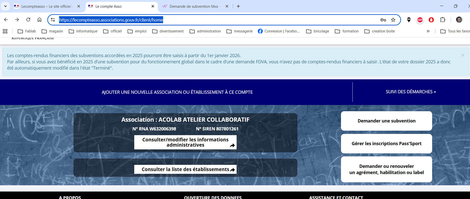 il faut aller sur Le compte Asso