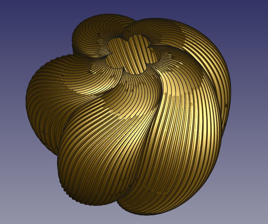 j’ai réussi sans aucun dessin de ma part, sans librairies, ni symetrie, ni répétition circulaire, donc en un tour de main et sans copier … avec mon petit pc portable .. 1 174 870 Ko le stl quand meme !