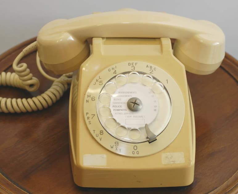 Doit dater de 15-20 ans … fait le bruit du cadran rotatif classique, on pouvait se promener avec le combiné mais numérotation obligatoire sur la base …