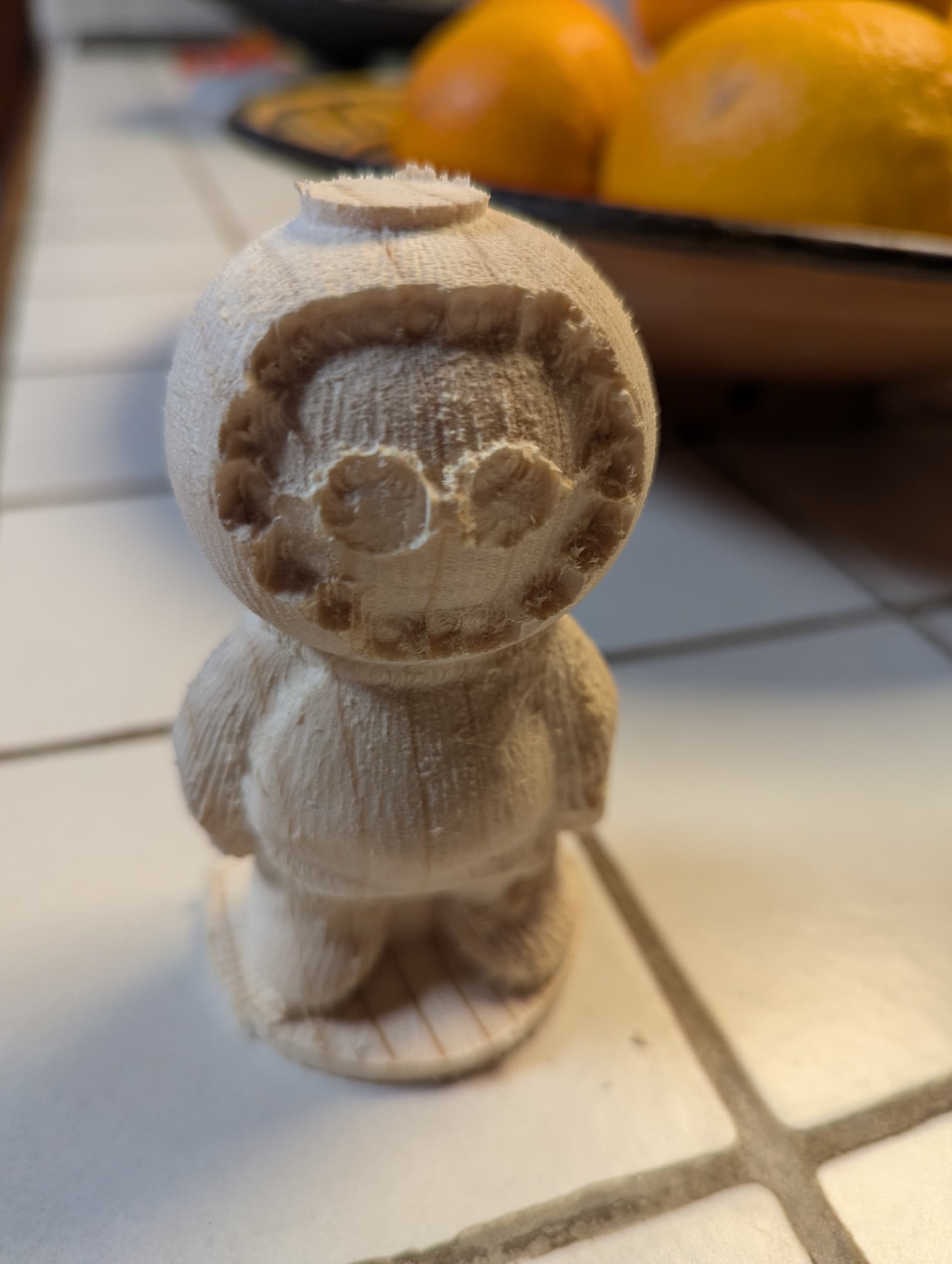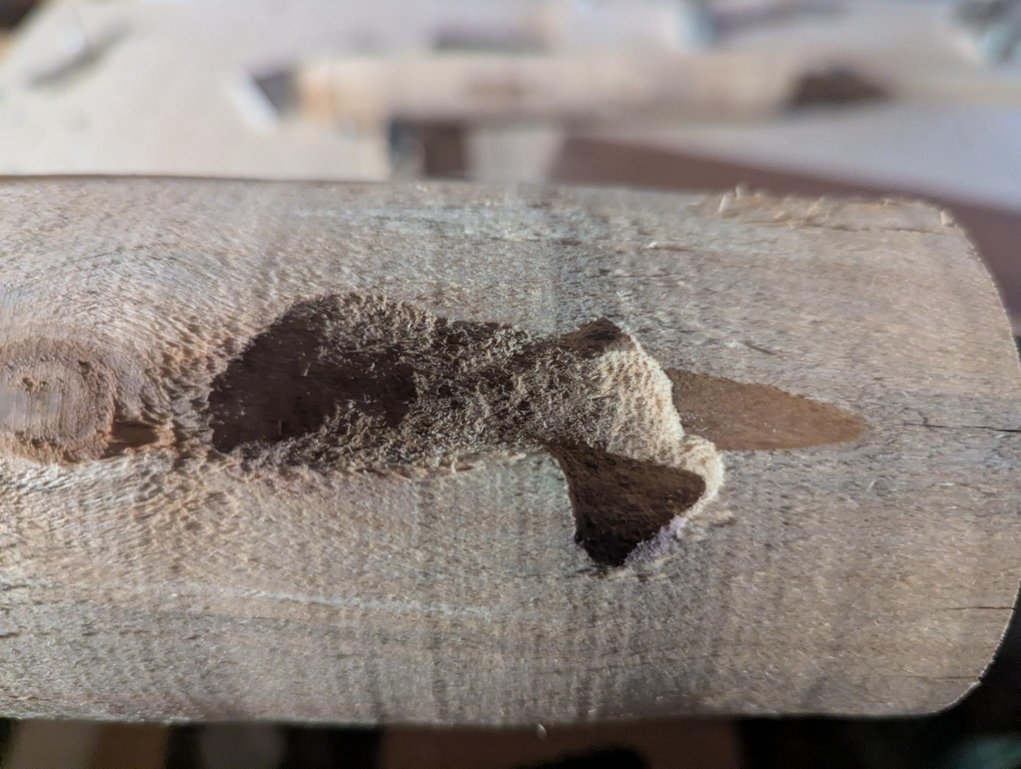 De plus, un ver avait entendu dire, que ce rondin servirait pour une serinette, et il avait commencé les trous dans un but louable de nous aider. Malheureusement, je ne sais pas si il avait lu le cahier des charges de sandrine concernant la géometrie des trous.
