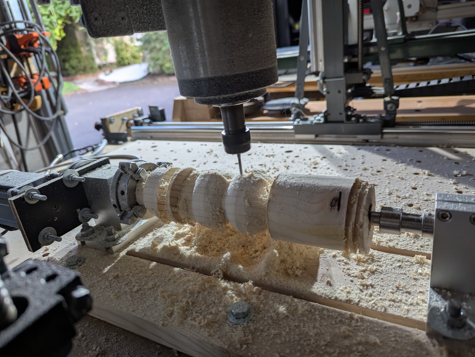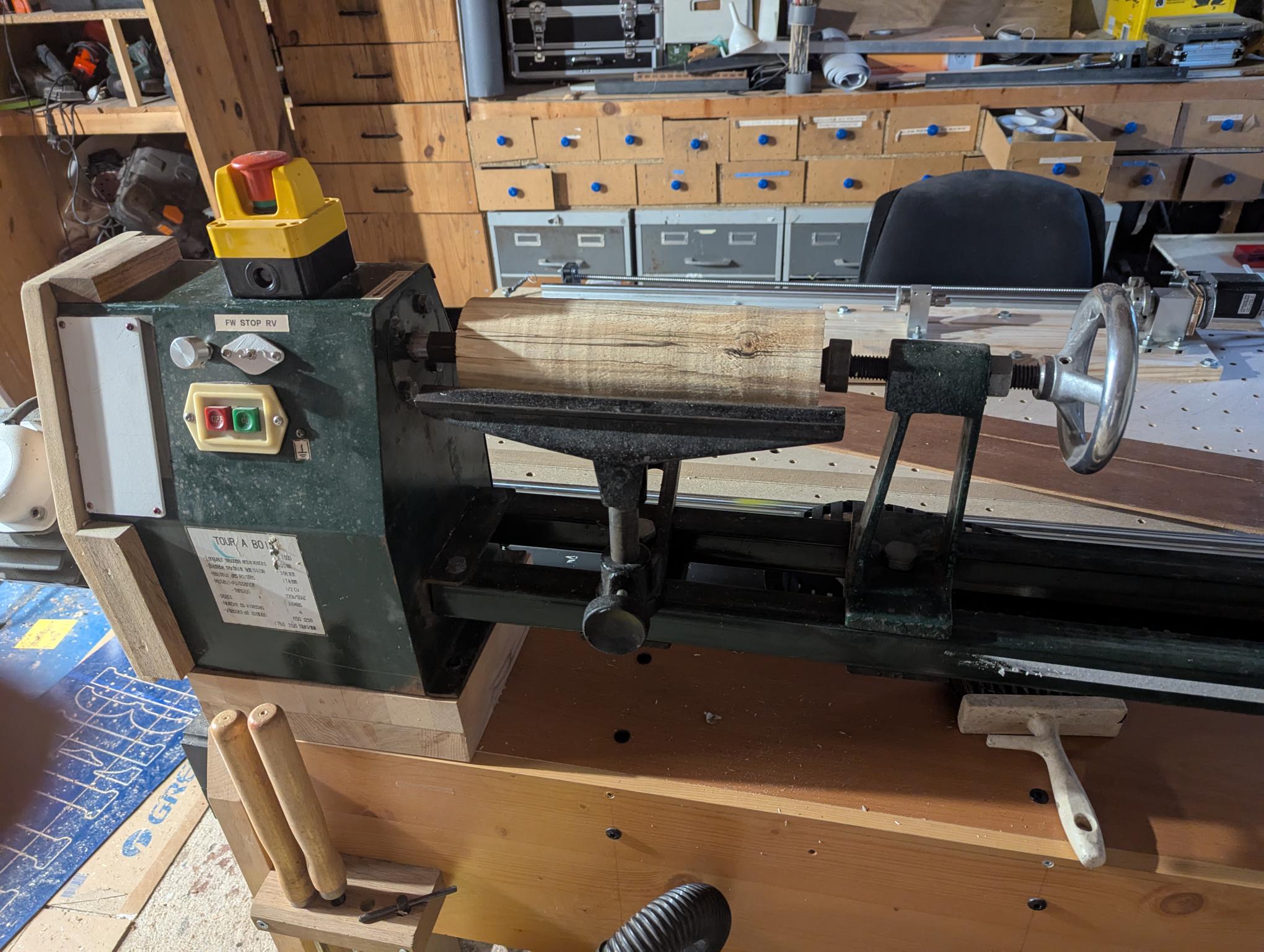 J’ai regardé, sur mon 4eme axe 22cm de long ca passe sans PB. Par contre en diametre 105mm maxi donc 100mm fini pas plus. J’ai fait éteter un bouleau chez moi, je devrais trouver des morceaux de 10 + cm de diametre. Il a ete coupé ce debut de printemps, il ne sera pas vraiment sec mais ca devrait aller. je vais le passer au tour à bois et je te dit si il reste un morceau capable de faire la suite.