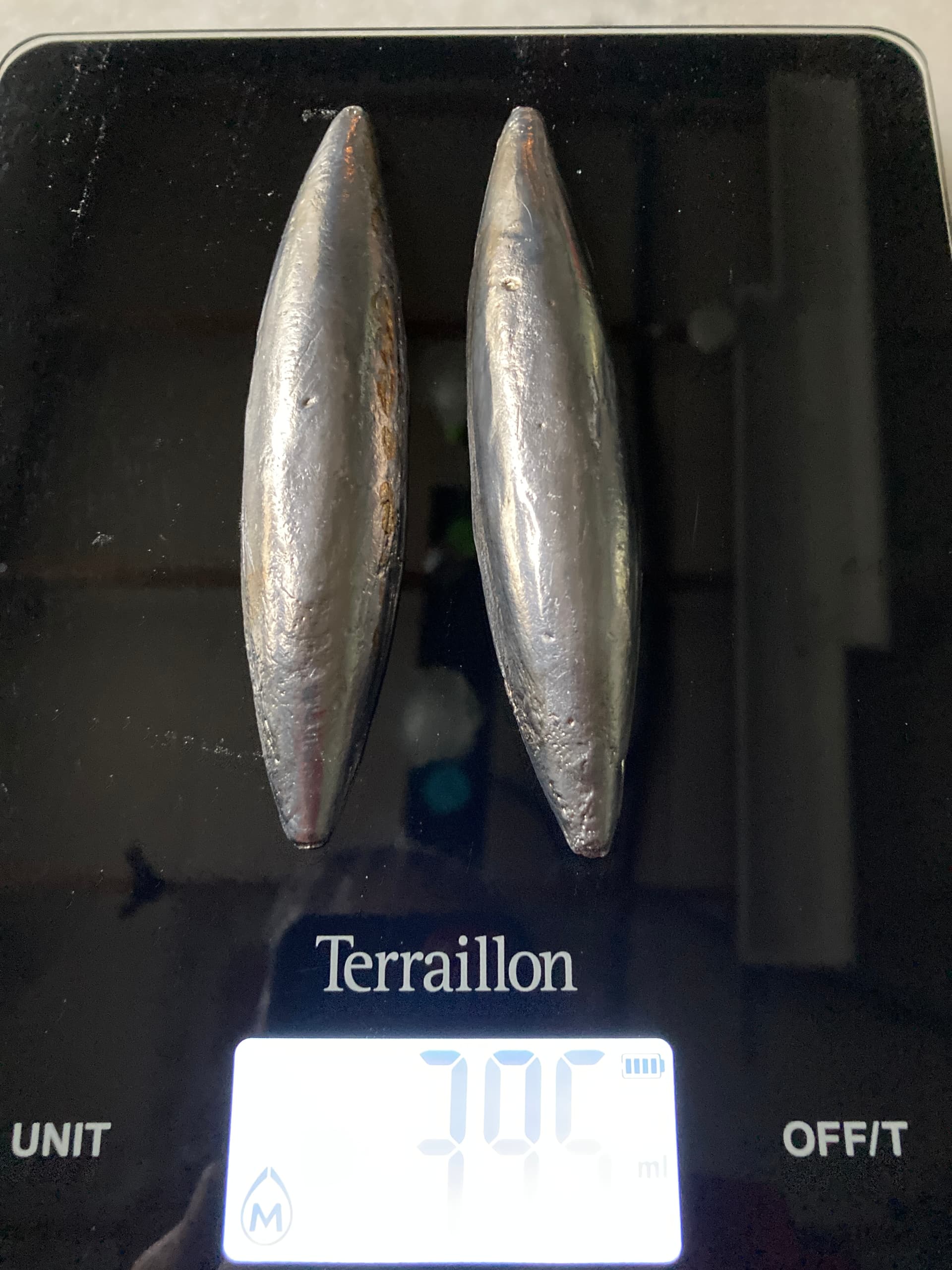 Tu as le volume de chaque trou ? pour que je pése la quantité de plomb à fondre