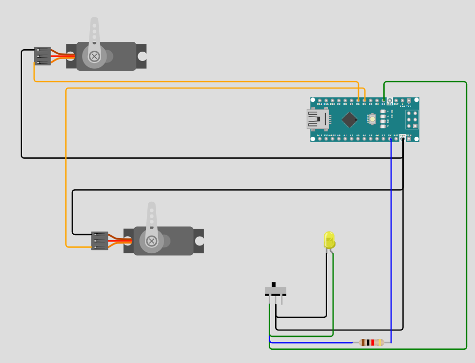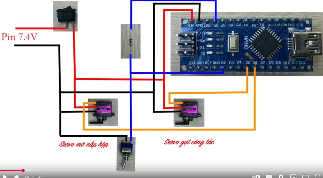 Donc, si tu alimentes en USB, servos classiques, si tu alimentes par pille/batterie, soit un petit servo pas gourmand, soit un servo ‘HV’, soit un régulateur de tension qui puisse supporter.